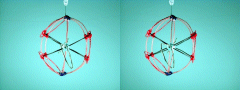 A third degree solution set for P4. The first two photos give equatorial views, the third is a shot of the pole. This one also has a cubic core structure, but an equatorial string rounds things out. |