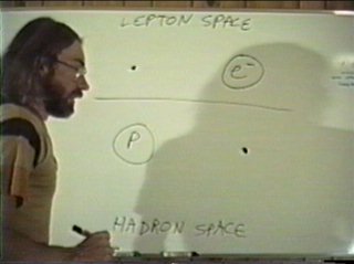 of the glass partition represents lepton space, the other side represents hadron space. On one