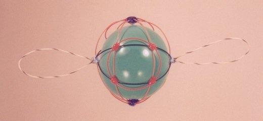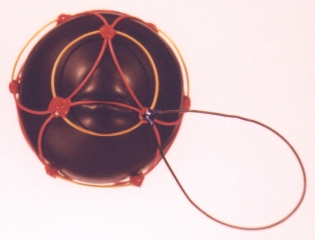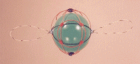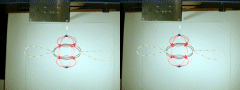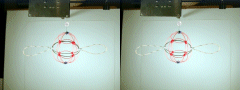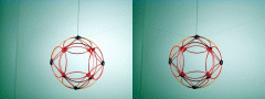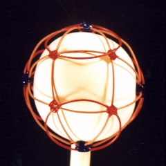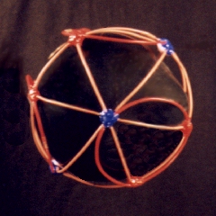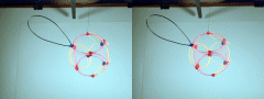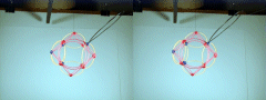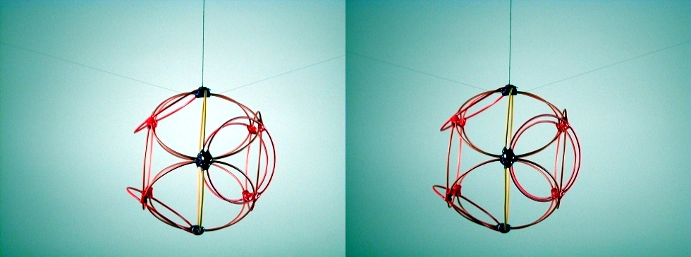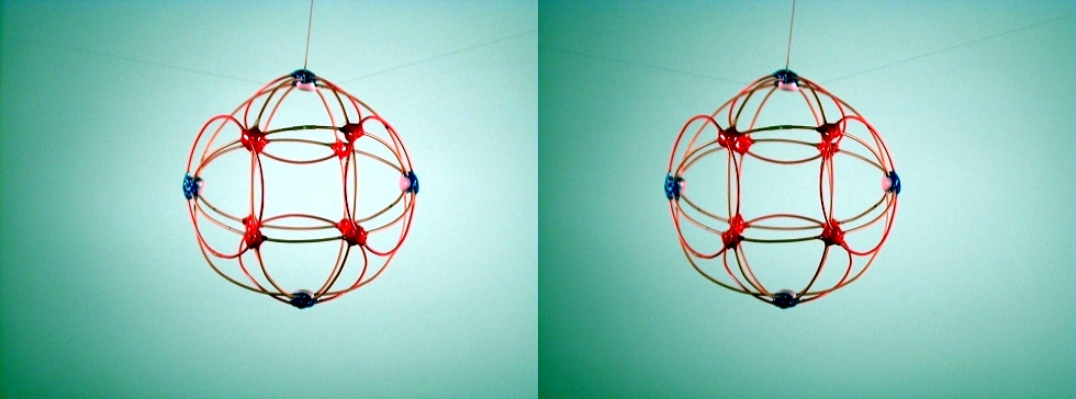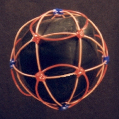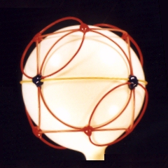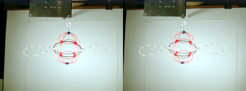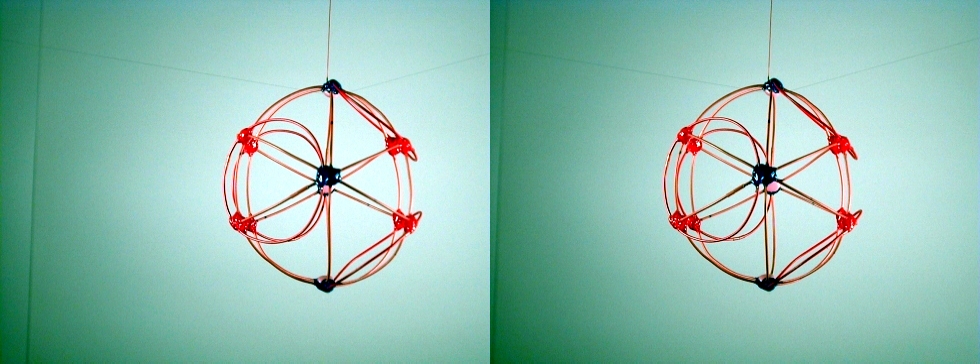 A third degree solution set for P4. The first two photos give equatorial views, the third is a shot of the pole. This one also has a cubic core structure, but an equatorial string rounds things out. |